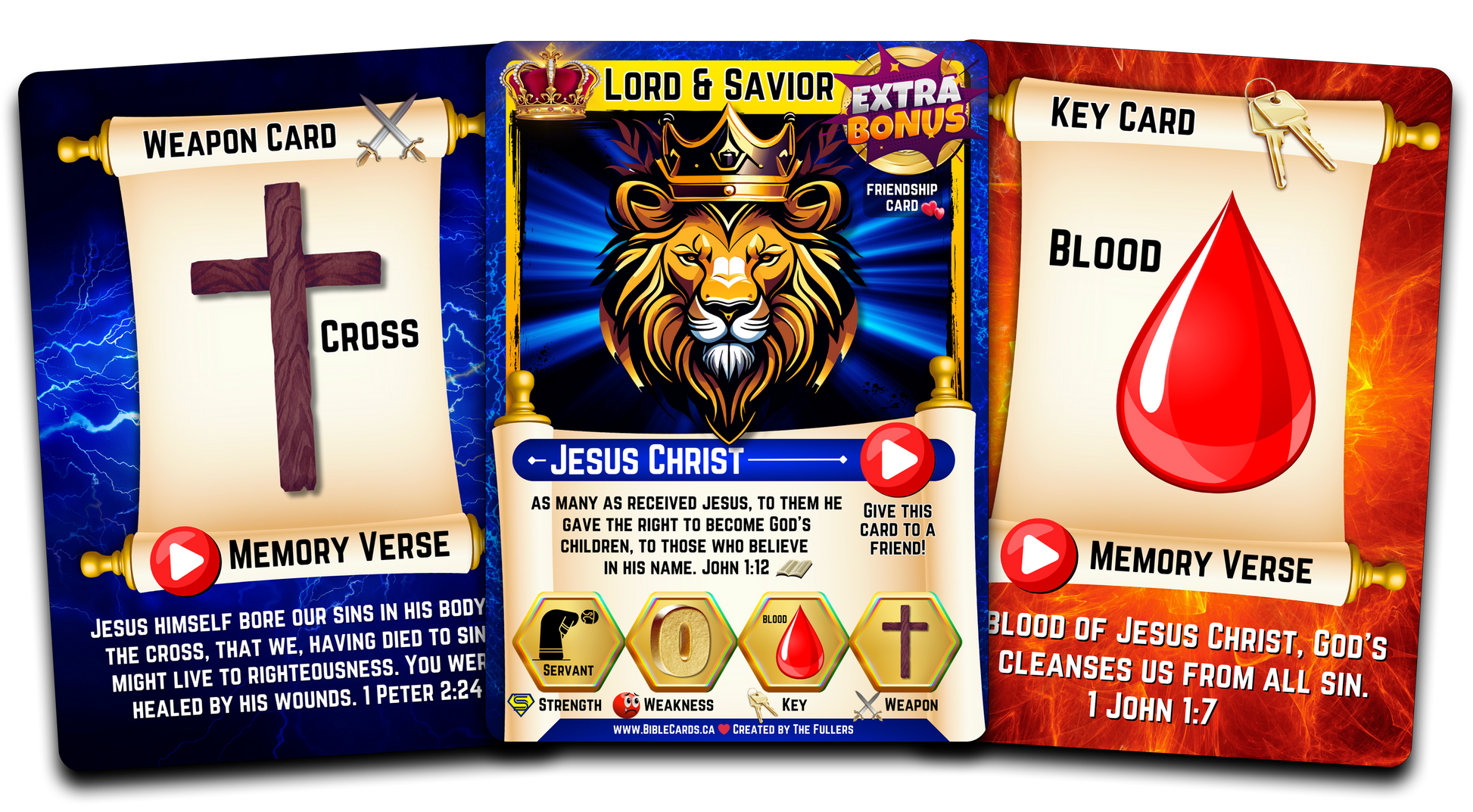Bible Cards also come with ExtraBonus friendship cards which can be given freely to your friends while ensuring you have a complete set of playable Bible Cards.